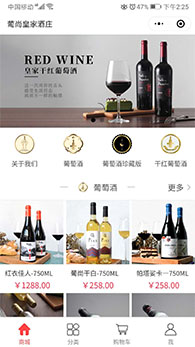 紹興葡尚皇家酒莊小程序是紹興魔方網(wǎng)絡(luò)科技有限公司2019年度開發(fā)的微信小程序,小程序頁面設(shè)計(jì)時尚簡潔,是愛品味紅酒和收藏紅酒購買小程序,開發(fā)了首頁商城、分類、購物車、我的中心等等模塊。
